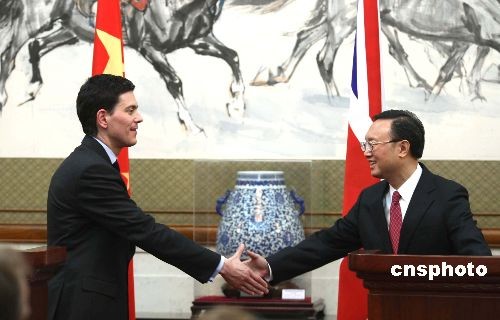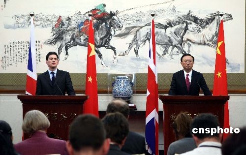 圖:楊潔篪與英外交大臣米利班德共同會見記者