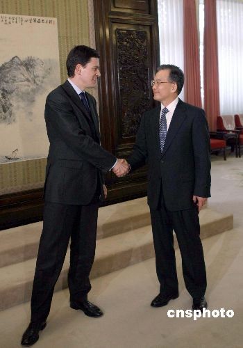 2月28日,中國國務(wù)院總理溫家寶在北京中南海紫光閣會見來訪的英國外交大臣米利班德。中新社發(fā) 盛佳鵬 攝