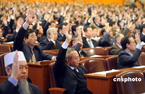 圖:委員表決全國政協(xié)十一屆一次會(huì)議議程等事項(xiàng)