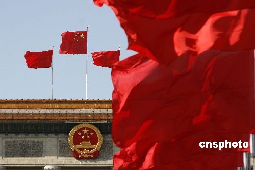 圖:北京天安門廣場紅旗飄飄迎“兩會”