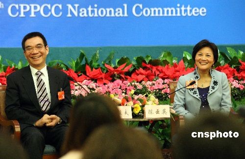 圖:夫妻人大代表林毅夫、陳云英面對(duì)媒體