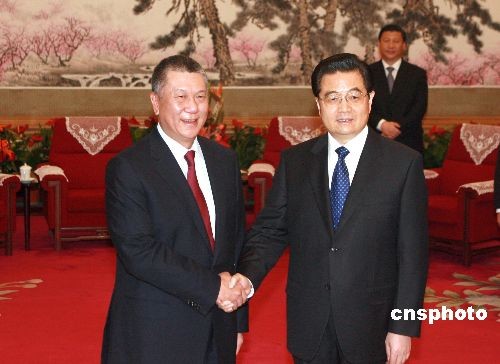 胡錦濤會(huì)見澳門特別行政區(qū)行政長(zhǎng)官何厚鏵
