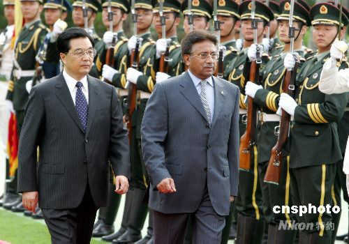 胡錦濤在三亞歡迎巴基斯坦總統(tǒng)穆沙拉夫