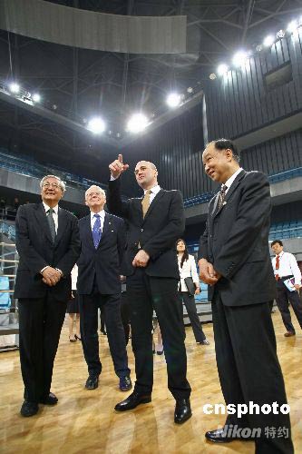 4月14日,瑞典首相賴因費(fèi)爾特在北京大學(xué)發(fā)表演講,并參觀了北京大學(xué)體育館。北京大學(xué)體育館將作為2008年北京奧運(yùn)會(huì)乒乓球?qū)S脠?chǎng)館。中新社發(fā) 盛佳鵬 攝