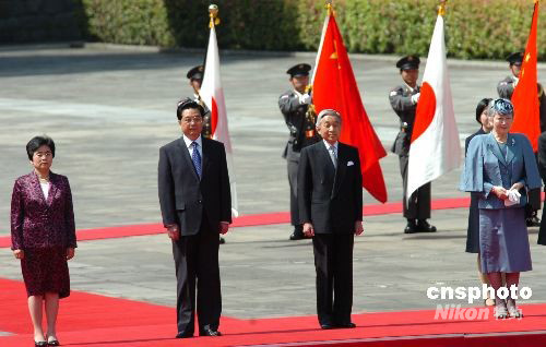 圖:日本天皇夫婦歡迎胡錦濤及夫人