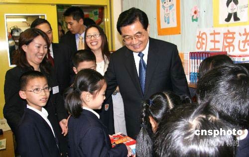 胡錦濤在日本橫濱山手中華學(xué)?赐麕熒