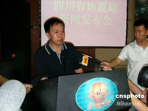 5月12日下午14時27分,四川汶川縣發(fā)生7.8級地震。四川省地震局先后已舉行6次新聞發(fā)布會,向外界及時發(fā)布最新災情和抗震救災情況。四川省地震局副局長、新聞發(fā)言人鄧昌文說,截至12日22時20分,四川地震已造成8533人死亡,其中綿陽市北川縣死亡人數(shù)達到7000多人。目前集震區(qū)通訊、交通依然中斷,人員傷亡不明。據(jù)統(tǒng)計,目前已發(fā)生余震527次,其中余震為6級的地震有兩次。中新社發(fā) 楊杰 攝