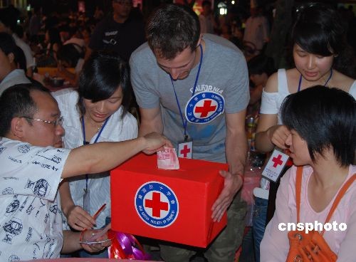 圖:外國游客協(xié)助募捐 桂林民眾捐款逾千萬