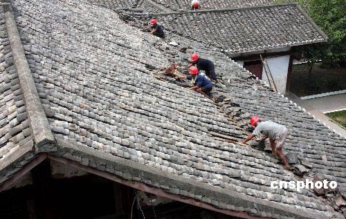 圖為施工隊(duì)伍正抓緊修復(fù)明月小學(xué)的部分教室。2008年5年12日四川汶川大地震波及華鎣市,震感強(qiáng)烈,致使該市學(xué)校大面積不同程度受災(zāi),據(jù)統(tǒng)計(jì),有11所學(xué)校受災(zāi),受損面積8200平方米,損失680萬(wàn)余元,致使近1500名學(xué)生不能正常行課。災(zāi)情發(fā)生后,四川華鎣市委市政府立即組織市教育局和各學(xué)校迅速行動(dòng),啟動(dòng)了應(yīng)急預(yù)案,各級(jí)領(lǐng)導(dǎo)在第一時(shí)間分赴受災(zāi)學(xué)校指揮指導(dǎo)抗災(zāi)救災(zāi)工作,確保了師生生命財(cái)產(chǎn)安全,無(wú)一例地震傷亡事故發(fā)生;同時(shí),他們?cè)诮M織專(zhuān)家鑒定后,立即籌集資金,組織施工隊(duì)伍修復(fù)損壞不大的教室,使學(xué)生盡快復(fù)課。