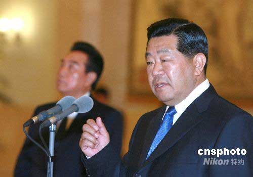圖:賈慶林向臺企聯(lián)參會代表發(fā)表講話