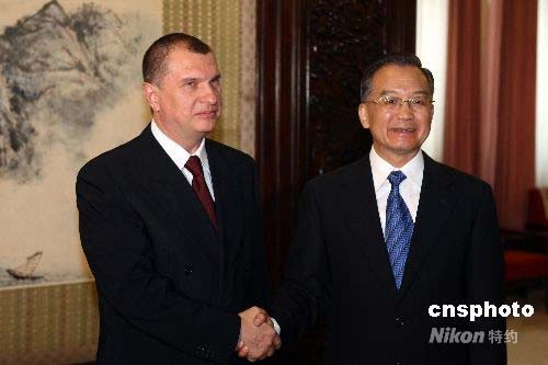 7月26日,中國國務(wù)院總理溫家寶在北京中南海紫光閣,會見俄羅斯副總理謝欽。中新社發(fā) 盛佳鵬 攝