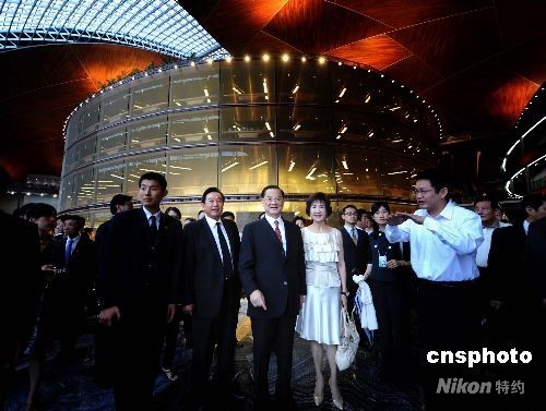 8月10日,海協(xié)會(huì)會(huì)長陳云林陪同中國國民黨名譽(yù)主席連戰(zhàn)參觀國家大劇院。隨后他們觀看了丹麥皇家芭蕾舞團(tuán)經(jīng)典舞劇《仙女》、《拿波里》片段。中新社發(fā) 廖攀 攝