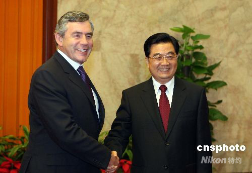 圖:胡錦濤會見英國首相布朗
