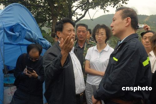 9月1日,四川省副省長張作哈赴攀枝花市地震災(zāi)區(qū)查看災(zāi)情。圖為張作哈(前左)在攀枝花市順利村臨時(shí)防震棚前作救災(zāi)安排。中新社發(fā) 石雨 攝