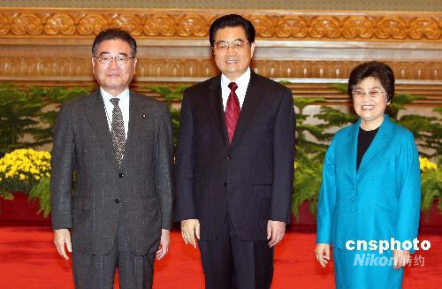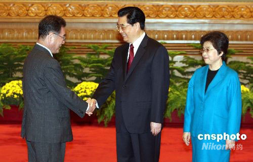 圖:胡錦濤夫婦歡迎出席北京殘奧會的加藤弘一