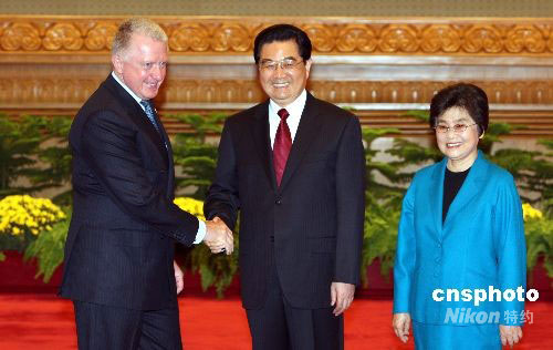 圖:胡錦濤夫婦歡迎出席北京殘奧會的維爾布魯根