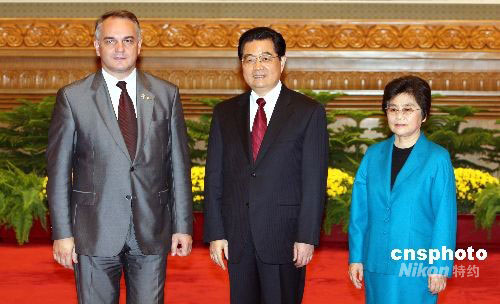 圖:胡錦濤夫婦歡迎出席北京殘奧會的波蘭副總理