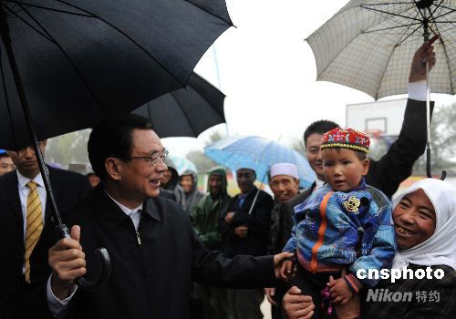 9月25日,賀國強率中央代表團一分團繼續(xù)在寧夏固原市展開慰問,在原州區(qū)吳莊村賀國強走村入戶慰問回族村民。中新社發(fā) 廖攀 攝