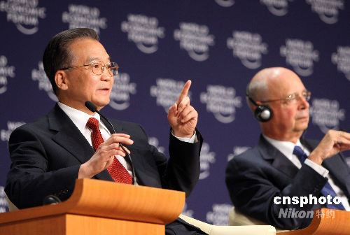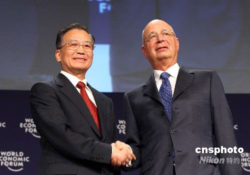 9月27日,2008天津夏季達(dá)沃斯論壇“新領(lǐng)軍者年會”開幕,中國總理溫家寶、世界經(jīng)濟論壇主席施瓦布出席開幕會。中新社發(fā) 張宇 攝