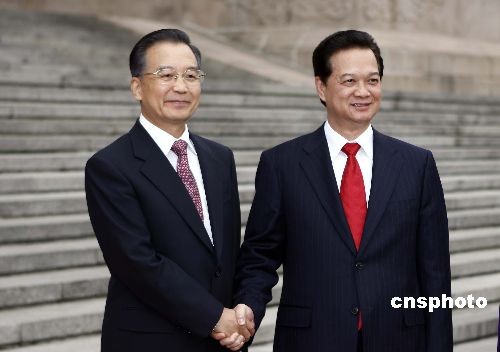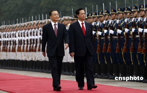10月22日,中國國務院總理溫家寶在北京人民大會堂東門外廣場舉行儀式,歡迎越南總理阮晉勇。中新社發(fā) 盛佳鵬 攝
