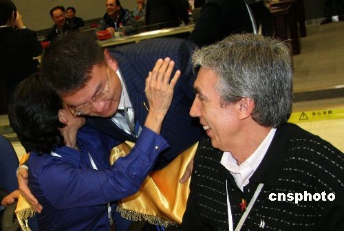 中委雙方在西昌衛(wèi)星發(fā)射中心指控大廳共同慶祝衛(wèi)星發(fā)射成功。 北京時間10月30日凌晨零時53分,中國在西昌衛(wèi)星發(fā)射中心用“長征三號乙”運載火箭,將“委內(nèi)瑞拉一號”通信衛(wèi)星成功送入預定軌道。這是中國首次向拉丁美洲用戶提供整星出口和在軌交付服務。中新社發(fā) 孫自法 攝