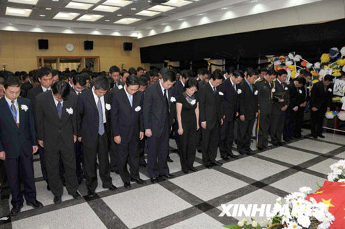 11月3日,中國駐蘇丹大使館舉行儀式,向日前在蘇丹被武裝分子綁架后遇害的5名同胞告別。中國駐蘇丹大使館工作人員、中國政府處理在蘇丹被綁架中國工人善后事宜工作組成員、中國石油天然氣集團公司負責(zé)人和在蘇丹中資機構(gòu)代表等200多人出席了儀式。中國石油天然氣集團公司9名員工2008年10月18日在蘇丹西南部一施工現(xiàn)場遭武裝分子綁架,其中5人遇害,另4人獲救。 新華社記者邵杰攝