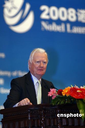 1996年獲得諾貝爾經(jīng)濟(jì)學(xué)獎(jiǎng)獲得者詹姆斯-莫里斯教授在開(kāi)幕式上致辭。