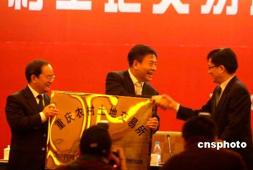 12月4日,醞釀已久的重慶農村土地交易所正式掛牌成立。該交易所由重慶市政府出資成立,系非營利性事業(yè)法人機構,實行現代企業(yè)管理模式,主要從事地票交易。所謂地票,指包括農村宅基地及其附屬設施用地、鄉(xiāng)鎮(zhèn)企業(yè)用地、農村公共設施和農村公益事業(yè)用地等農村集體建設用地,經過復墾并經土地管理部門嚴格驗收后產生的指標。中新社發(fā) 郭晉嘉 攝
