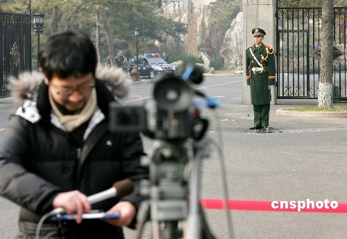 12月8日,新一輪朝核問題六方會(huì)談代表團(tuán)團(tuán)長(zhǎng)會(huì)將于當(dāng)日下午在北京舉行。此次會(huì)談是在今年7月以后時(shí)隔5個(gè)月舉行,韓、朝、美、中、俄、日六國(guó)代表團(tuán)長(zhǎng)將商討核驗(yàn)證議定書的問題和棄核第二階段時(shí)間表等。圖為在釣魚臺(tái)國(guó)賓館門外等候會(huì)議開始的記者。中新社發(fā) 富田 攝