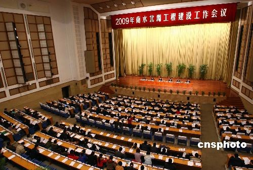 12月15日,國(guó)務(wù)院南水北調(diào)辦公室在山東濟(jì)南召開南水北調(diào)工程建設(shè)工作會(huì)議,研究部署2009年南水北調(diào)工程建設(shè)任務(wù),國(guó)務(wù)院南水北調(diào)辦公室主任張基堯出席會(huì)議。截至2008年11月底,南水北調(diào)東、中線一期工程累計(jì)下達(dá)投資456.7億元(含初步設(shè)計(jì)工作投資11.7億元),累計(jì)完成投資223.9億元,占在建設(shè)計(jì)單元工程總投資338.5億元的66%,其中東、中線一期工程分別累計(jì)完成投資41.6億元和182.3億元,分別占東、中線在建設(shè)計(jì)單元工程總投資的76%和64%。中新社發(fā) 杜洋 攝