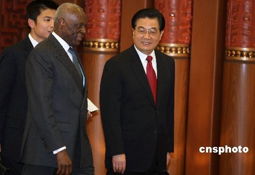 12月17日晚,中國(guó)國(guó)家主席胡錦濤在北京人民大會(huì)堂舉行儀式,歡迎安哥拉共和國(guó)總統(tǒng)若澤·愛(ài)德華多·多斯桑托斯訪華。多斯桑托斯總統(tǒng)是應(yīng)中國(guó)國(guó)家主席胡錦濤的邀請(qǐng),12月16日晚乘專機(jī)抵達(dá)北京,開(kāi)始對(duì)中國(guó)進(jìn)行為期4天的國(guó)事訪問(wèn)。中新社發(fā) 任晨鳴 攝