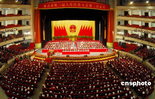 1月8日上午,重慶市第三屆人民代表大會(huì)第二次會(huì)議開幕。800多名重慶市人大代表將在5天時(shí)間內(nèi)審議《重慶市人民政府工作報(bào)告》、《重慶市高級(jí)人民法院工作報(bào)告》、《重慶市人民檢察院工作報(bào)告》等,行使人大代表權(quán)利。中新社發(fā) 郭晉嘉 攝