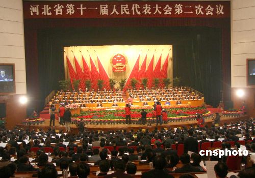 河北省第十一屆人民代表大會第二次會議1月8日在石家莊開幕,七百余名人大代表齊聚河北會堂,聽取和審議省政府工作報告。報告中提出該省今年經濟增長9%的目標。中新社發(fā) 田張夢 攝