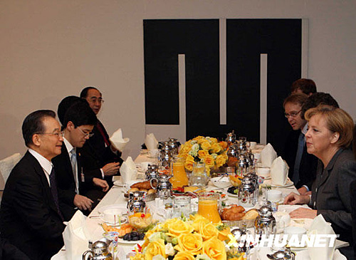 1月29日,正在德國進(jìn)行正式訪問的中國國務(wù)院總理溫家寶,應(yīng)邀在柏林德國總理府與德國總理默克爾共進(jìn)早餐。蘭紅光 攝