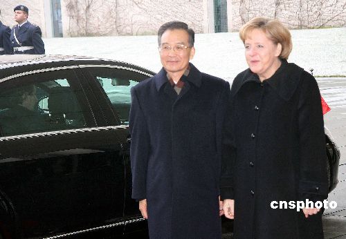 當?shù)貢r間一月二十九日上午,德國總理默克爾在柏林總理府舉行儀式,歡迎中國國務院總理溫家寶到訪。雙方并舉行了會談。中新社發(fā) 吳衛(wèi)中 攝