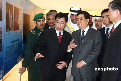 當(dāng)?shù)貢r(shí)間2月11日上午,正在沙特進(jìn)行國(guó)事訪問(wèn)的中國(guó)國(guó)家主席胡錦濤,來(lái)到利雅得水泥公司,參觀由中材國(guó)際承建的水泥生產(chǎn)線項(xiàng)目。中新社發(fā) 齊彬 攝
