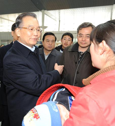 2月16日下午2時(shí)49分,溫家寶總理結(jié)束在天津的調(diào)查研究準(zhǔn)備乘坐火車返回北京時(shí),在天津火車站候車室遇到來(lái)自河北張家口2周歲的白血病患兒李瑞小朋友。當(dāng)溫總理得知他因?yàn)榧彝ダщy看不起病,母親準(zhǔn)備帶他回老家時(shí),當(dāng)即囑咐隨行工作人員安排孩子到北京治病。記者于下午5時(shí)獲悉,小李瑞已經(jīng)入住北京兒童醫(yī)院,國(guó)務(wù)院辦公廳工作人員還為他募集了捐款,并交到了孩子家長(zhǎng)手中。 新華社記者 李學(xué)仁 攝
