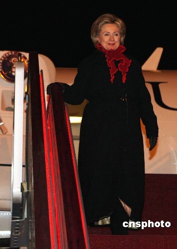 2月20日晚7時(shí)40分,美國(guó)新任國(guó)務(wù)卿希拉里·克林頓乘坐專機(jī)抵達(dá)北京首都國(guó)際機(jī)場(chǎng),開始對(duì)中國(guó)進(jìn)行訪問。中國(guó)是希拉里·克林頓此次亞洲“傾聽之旅”的最后一站,也被外界認(rèn)為是她此次訪問的“壓軸戲”。中新社發(fā) 任晨鳴 攝