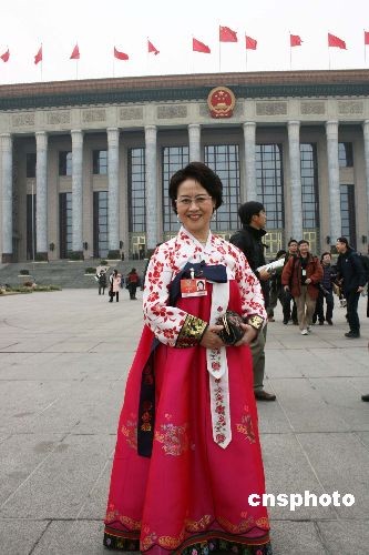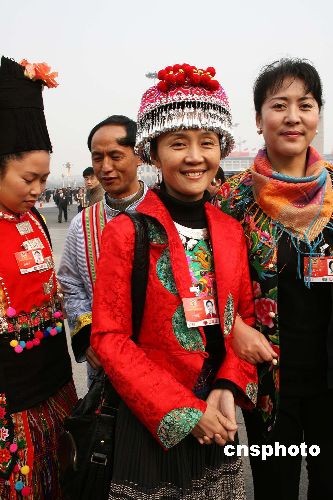 3月3日,全國政協(xié)十一屆二次會(huì)議在北京人民大會(huì)堂開幕,少數(shù)民族政協(xié)委員在人民大會(huì)堂前留影。中新社發(fā) 金立冬 攝