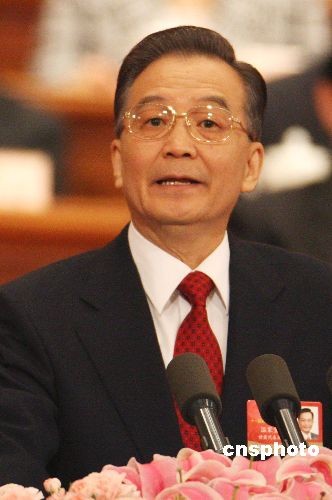 3月5日上午,十一屆全國(guó)人大二次會(huì)議在北京人民大會(huì)堂開幕,國(guó)務(wù)院總理溫家寶向大會(huì)作政府工作報(bào)告。中新社發(fā) 任晨鳴 攝