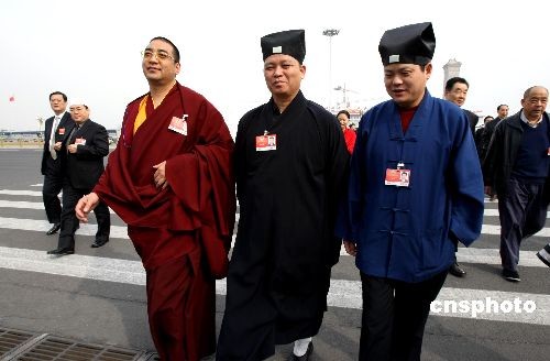 3月7日,全國(guó)政協(xié)十一屆二次會(huì)議舉行第二次全體會(huì)議,宗教界人士早早抵達(dá)人民大會(huì)堂。中新社發(fā) 傅丹丹 攝