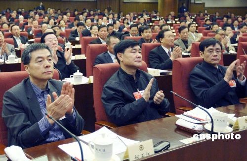 3月11日,政協第十一屆全國委員會常務委員會第五次會議在北京舉行,全國政協主席賈慶林出席并主持會議。會議通過政協第十一屆全國委員會第二次會議關于常務委員會工作報告的決議(草案),審議通過政協第十一屆全國委員會提案委員會關于政協十一屆二次會議提案審查情況的報告(草案),通過政協第十一屆全國委員會第二次會議政治決議(草案)。圖為與會委員鼓掌祝賀決議(草案)通過。中新社發(fā) 盛佳鵬 攝