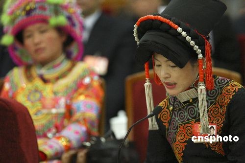 3月11日,出席十一屆全國人大二次會議的四川代表團(tuán)在北京人民大會堂舉行全體會議,向中外媒體開放并接受記者提問。全國人大代表、四川西昌學(xué)院法學(xué)教授王明雯在會議上表示,建議向司法程序注入更多的科技含量,逼使司法機(jī)關(guān)確保程序合法、文明執(zhí)法。中新社發(fā) 盛佳鵬 攝