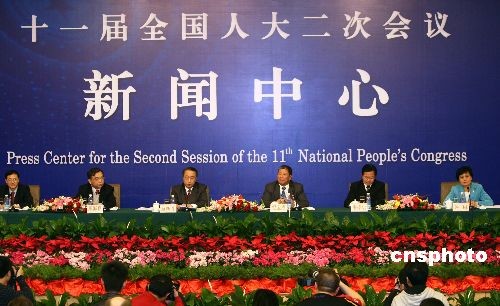 3月12日,十一屆全國(guó)人大二次會(huì)議新聞中心舉行“孔子學(xué)院的發(fā)展情況”專(zhuān)題采訪會(huì),教育部副部長(zhǎng)章新勝、中國(guó)人民大學(xué)校長(zhǎng)紀(jì)寶成、武漢大學(xué)校長(zhǎng)顧海良、廈門(mén)大學(xué)校長(zhǎng)朱崇實(shí)、國(guó)家漢辦主任兼孔子學(xué)院總部總干事許琳接受中外記者的采訪。中新社發(fā) 杜洋 攝
