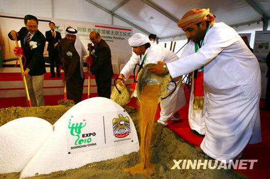 4月2日,中國(guó)2010年上海世博會(huì)阿拉伯聯(lián)合酋長(zhǎng)國(guó)國(guó)家館正式破土動(dòng)工。阿聯(lián)酋國(guó)家館占地6000平方米,其設(shè)計(jì)靈感來(lái)自阿聯(lián)酋雄偉的自然景觀(guān)——沙丘,如波浪般起伏的外觀(guān)富于創(chuàng)新和動(dòng)感。上海世博會(huì)的這座“沙丘”展館將重點(diǎn)展示阿聯(lián)酋建國(guó)38年來(lái)快速成長(zhǎng)的歷程和建設(shè)可持續(xù)發(fā)展城市的獨(dú)特經(jīng)驗(yàn)。在上海世博會(huì)會(huì)期結(jié)束之后,阿聯(lián)酋國(guó)家館將被拆卸,運(yùn)回國(guó)內(nèi)重建并長(zhǎng)期使用 任瓏 攝