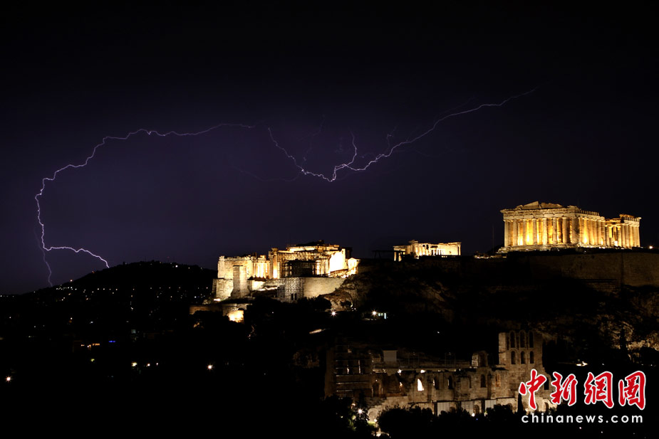 28日,在希臘雅典衛(wèi)城的上空,一道巨型閃電向具有2500年歷史的帕特農(nóng)神廟劈來,幸好沒有造成任何損失。