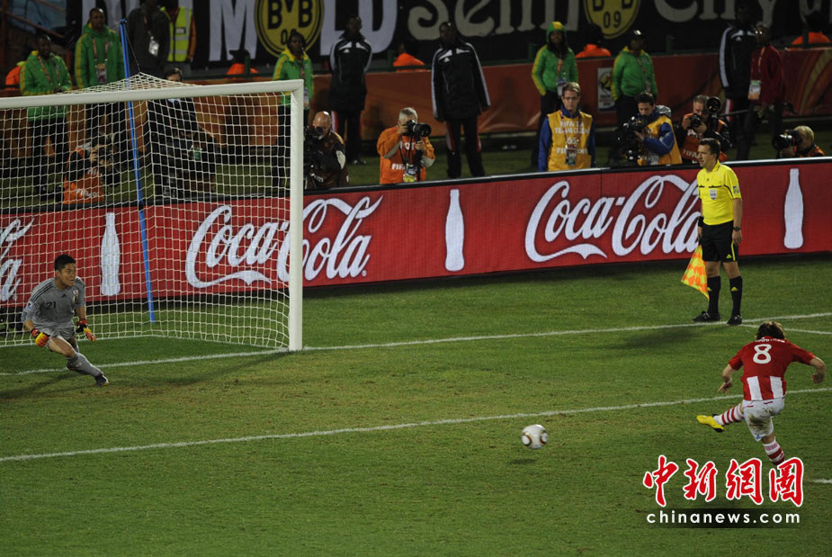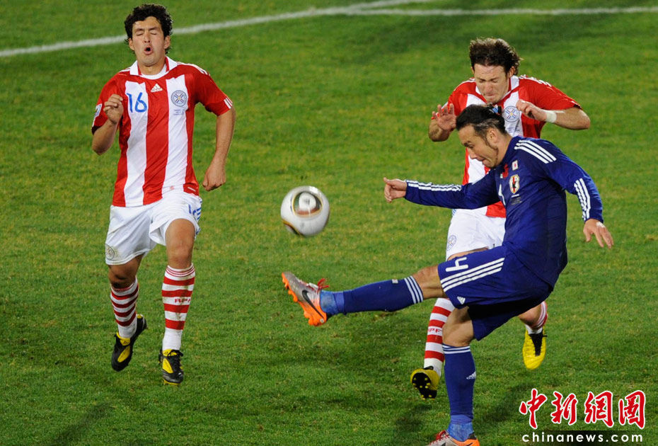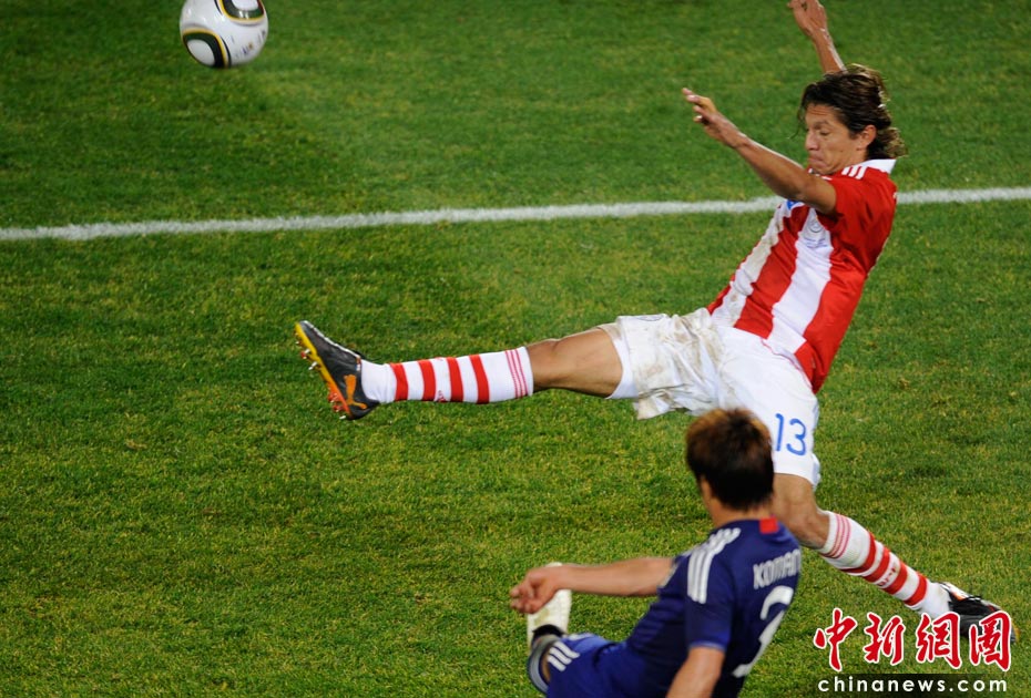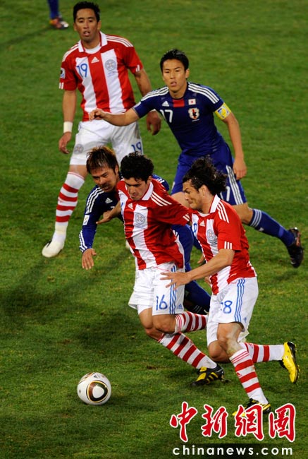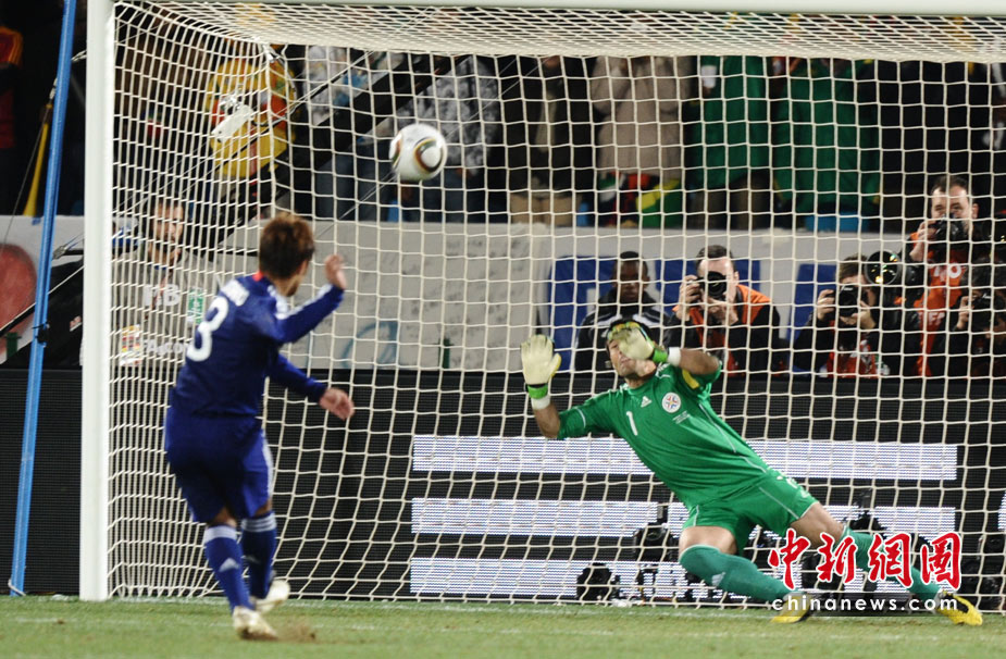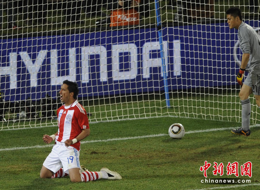 29日晚,南非世界杯1/8決賽第七場比賽比勒陀利亞的洛夫托斯球場拉開戰(zhàn)幕,由巴拉圭隊(duì)迎戰(zhàn)日本隊(duì)。120分鐘比賽結(jié)束時(shí),雙方均沒有建樹,場上比分始終保持在0-0。在殘酷的點(diǎn)球大戰(zhàn)中,巴拉圭隊(duì)五罰全中,以5-3擊敗日本,挺進(jìn)八強(qiáng)。