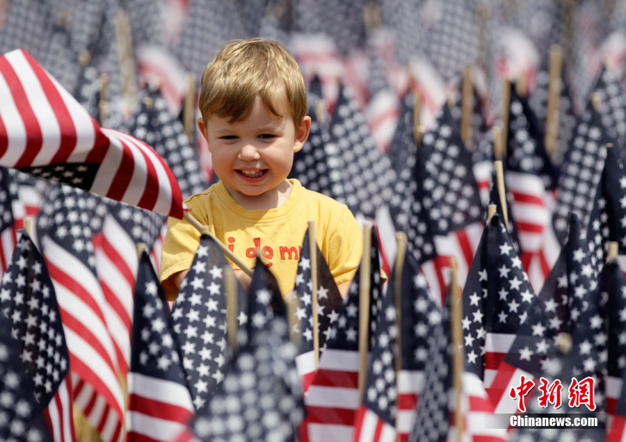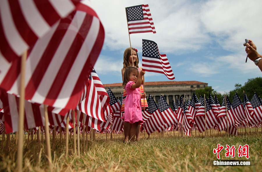 2010年6月30日,美國華盛頓,環(huán)保組織塞拉俱樂部的成員將數(shù)千面美國國旗插成“擺脫石油”(Freedom From Oil)的字樣,抗議墨西哥灣漏油事件。