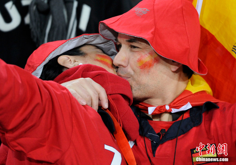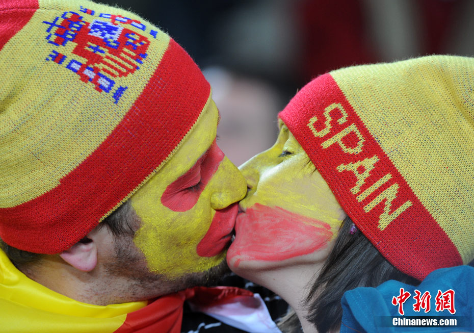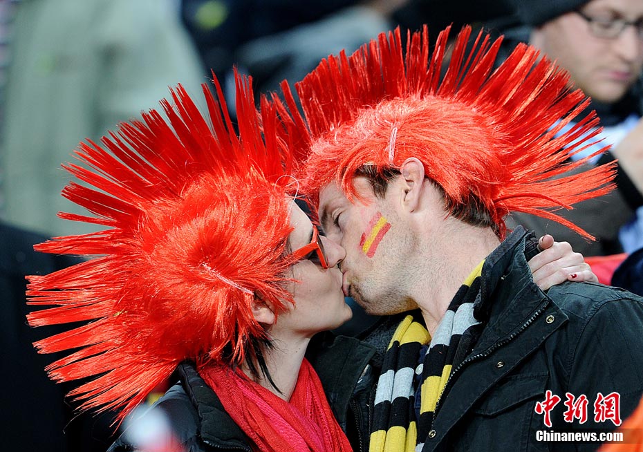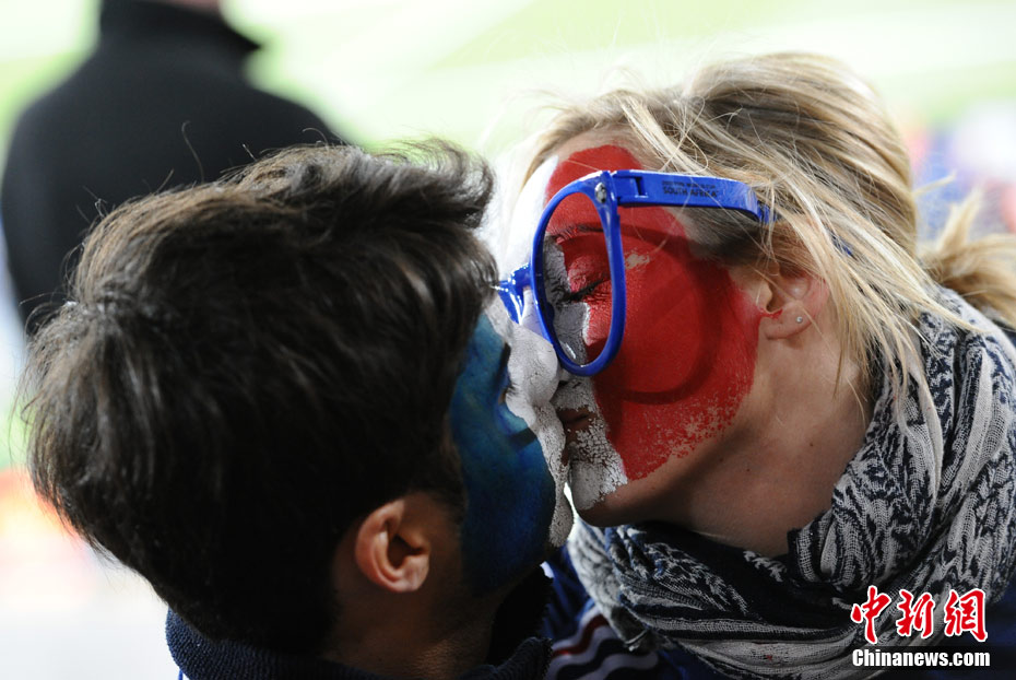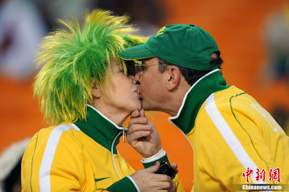 足球讓女人走開不是真理,與愛人共同享受足球之魅才是幸福?磁_(tái)上愛侶的濃情蜜意著實(shí)讓人羨慕,情到深處的深深一吻,獻(xiàn)給愛人,也獻(xiàn)給令人癡迷的世界杯。中新社記者 廖攀 攝