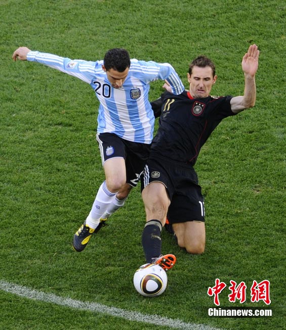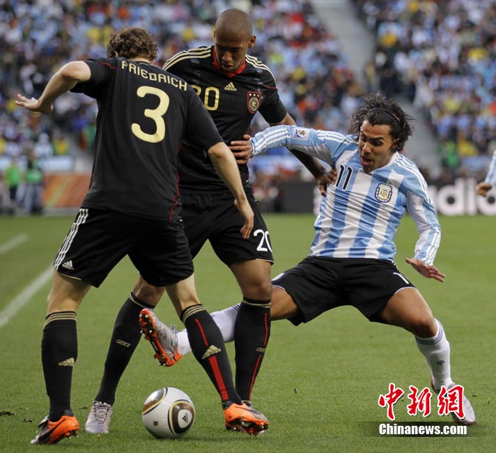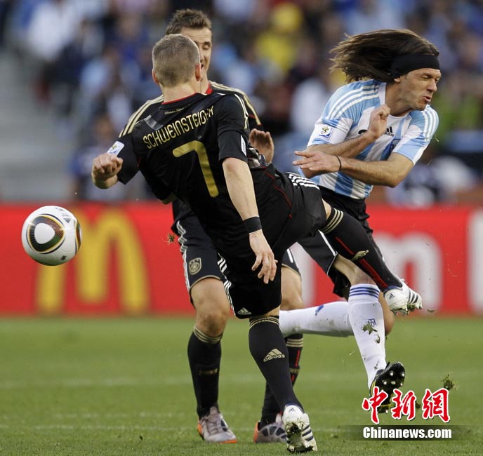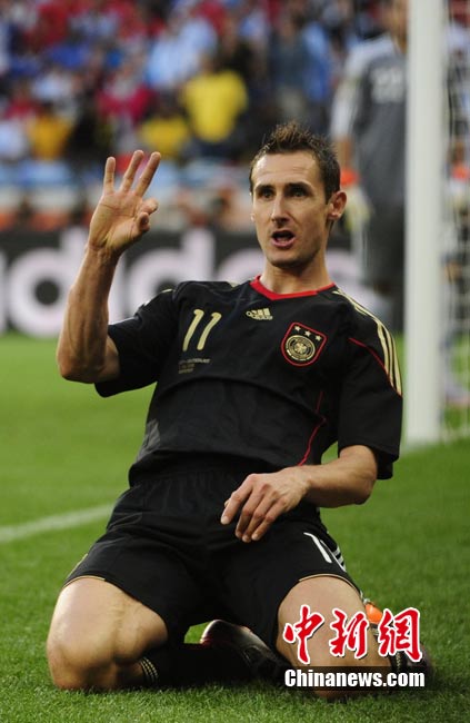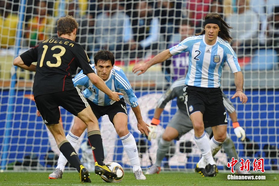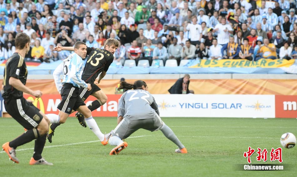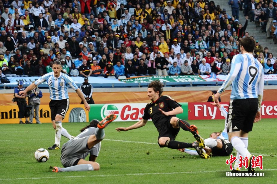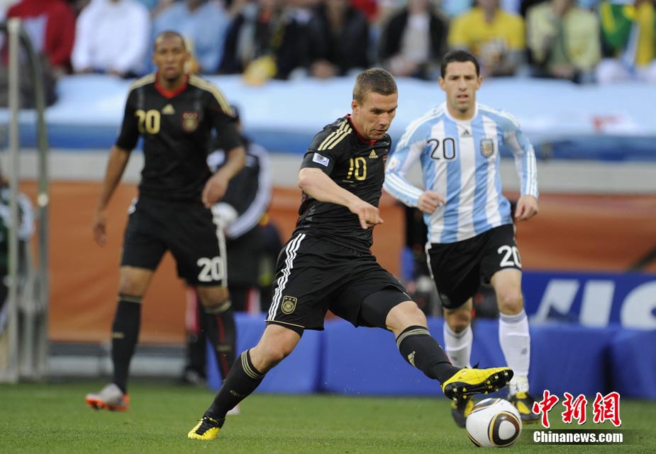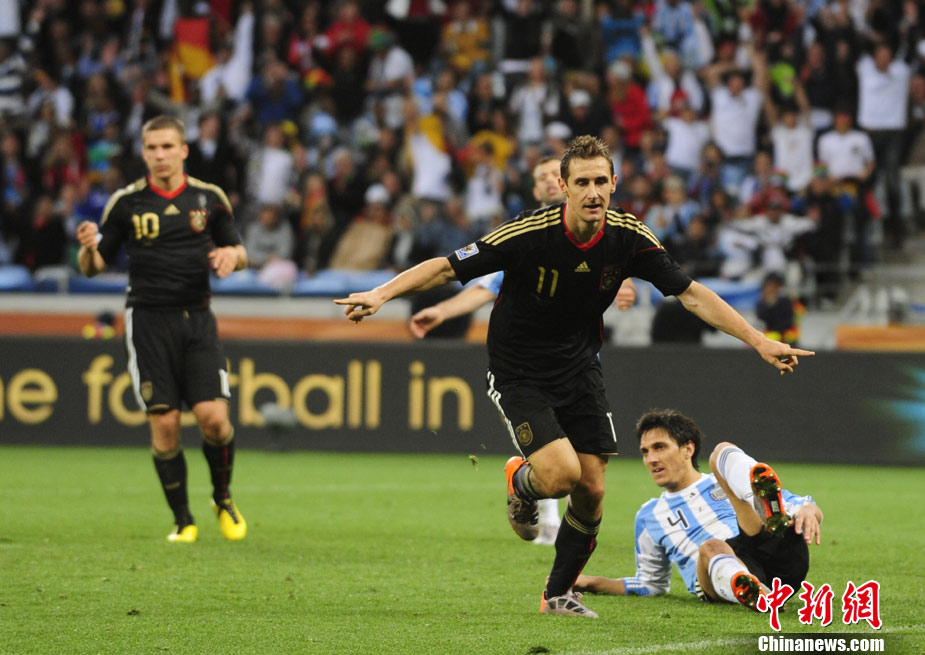7月3日晚,南非世界杯1/4決賽第三場展開了角逐,阿根廷隊在開普敦綠點(diǎn)球場迎來了德國隊的挑戰(zhàn)。穆勒在上半場第3分鐘先拔頭籌,下半場克洛澤梅開二度,弗雷德里希也打入一球,德國隊4-0狂勝阿根廷,昂首晉級半決賽。